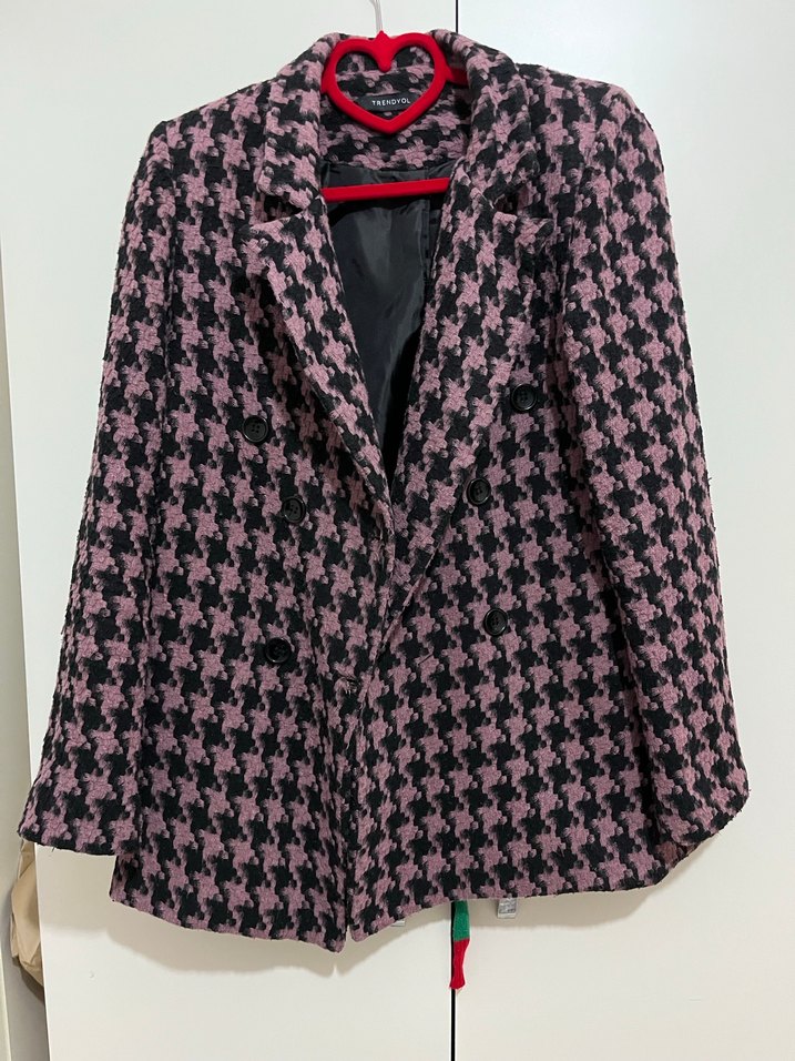 Düğmeli Pembe siyahlı kışlık Kadın Blazer Ceket