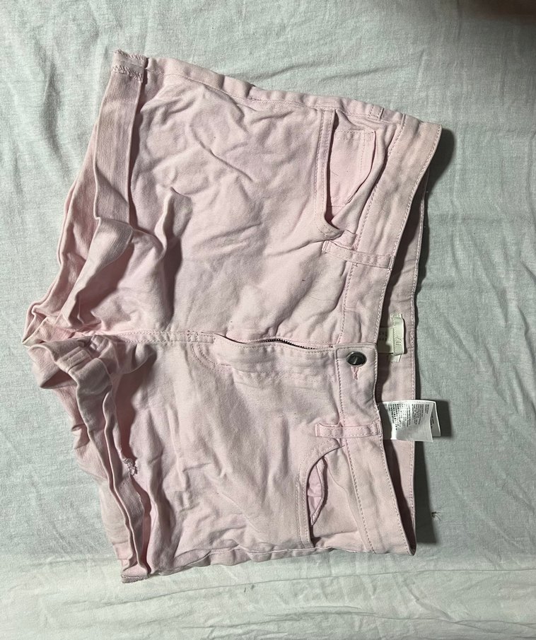 Düğmeli, kumaştan yapılmış, bol kesim pembe şortudur. Sokak stili için uygundur.