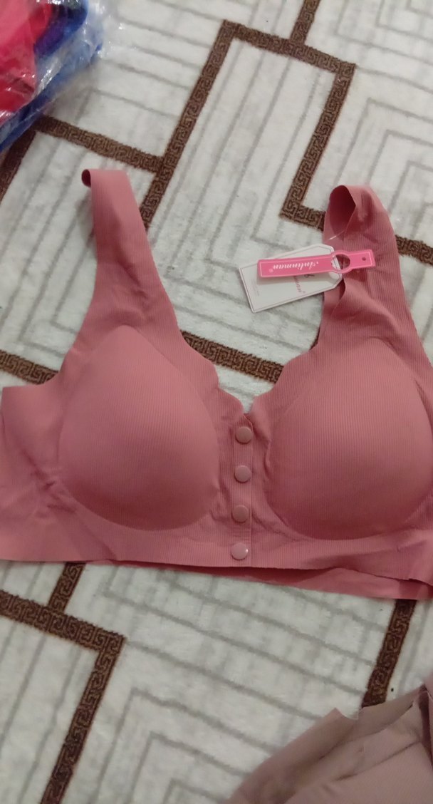 Pastel pembe renkte, ön düğmeli ve normal uzunlukta sporcu sütyeni. Desensiz ve rahat bir yapıya sahiptir. Günlük kullanım için uygundur.