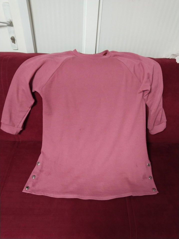 Düğmeli Pembe tunik iki sefer giyilmiştir