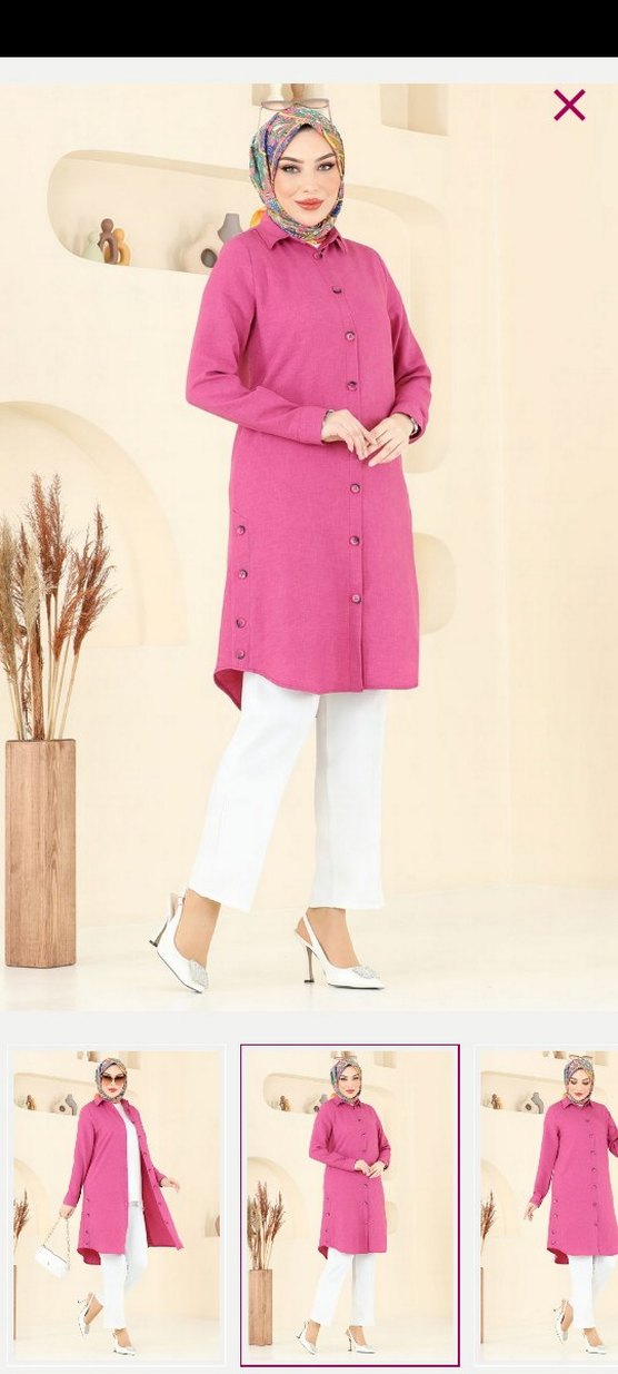 Düğmeli Pembe Uzun Kadın Tunik gögüs 60 boyu 94
