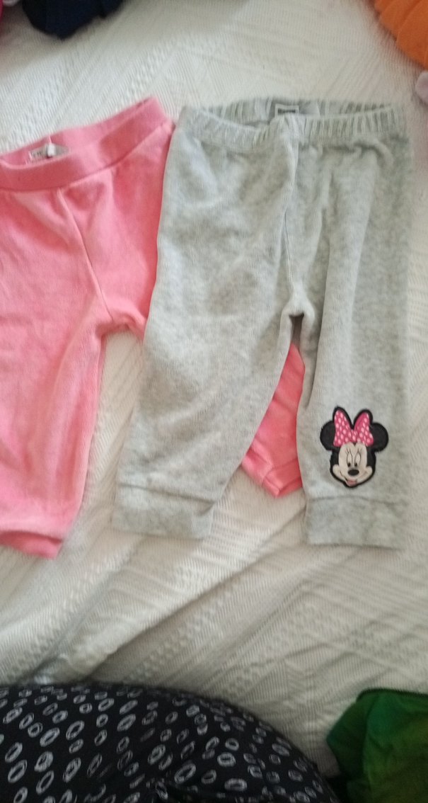 Yumuşak ve sıcak kumaştan, düğmeli pembe ve gri kız taytları. Gri taytta Minnie Mouse figürü bulunur.