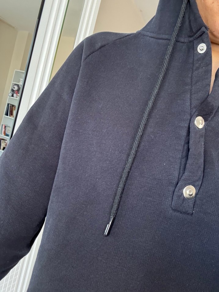 Düğmeli ve polo yakalı gri erkek sweatshirtü. Uzun kollu, vücuda oturan ve normal boyda, yumuşak ve sıcak kumaştan üretilmiştir. Günlük sokak stili için uygun.