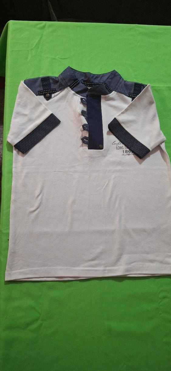 Düğmeli polo yakalı, kısa kollu erkek tişörtü. Sentetik kumaştan, beyaz ve gri tonlarda, regular fit kesimle tasarlanmıştır.