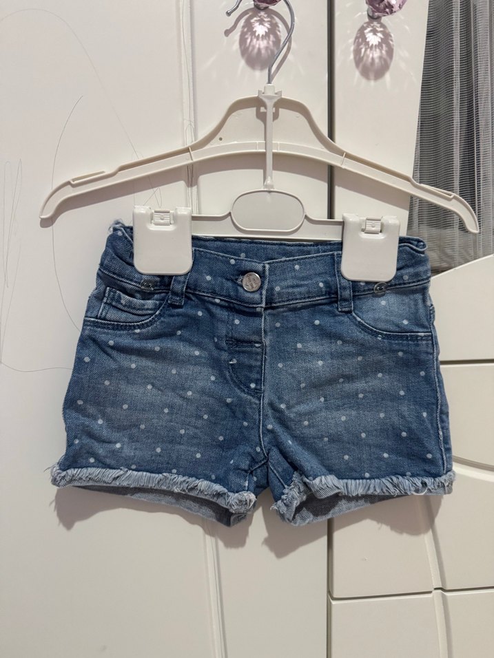 Düğmeli, puanlı desenli, fitted kesim kız kot şort. Sokak stiline uygun rahat bir tasarım.
