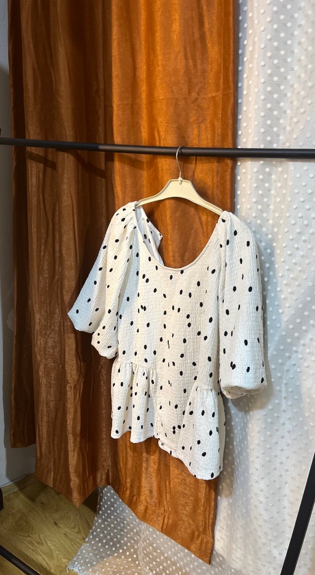 Düğmeli Puantiyeli Kısa Kollu Mini Bluz