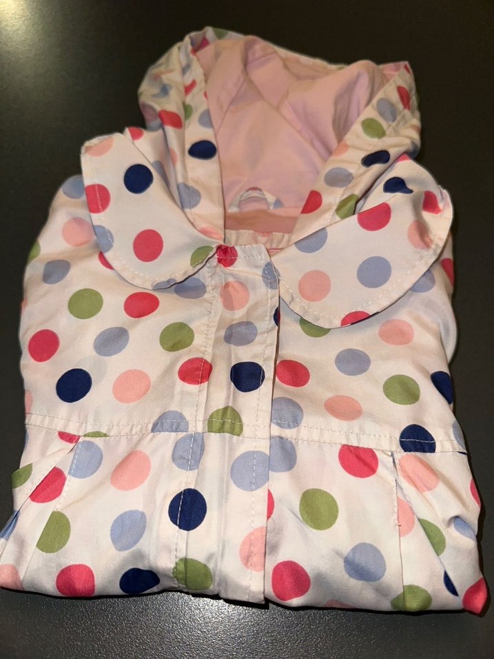 İyi durumda kreşte kullanıldı kullanıma engel herhangi bir kusuru yok 6/7 yaş Düğmeli, sentetik kumaştan yapılmış, pastel renkli çok renkli puantiyeli kız yağmurluğu. Fitted kesim ve notched lapel yaka ile trendy casual tarzına uygun. ☔