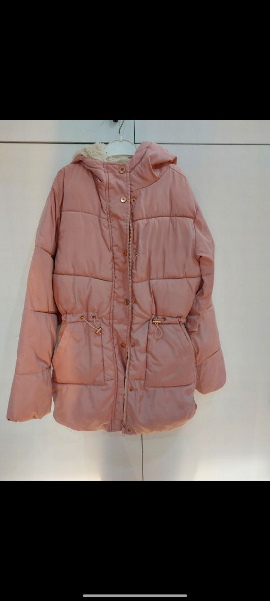Düğmeli, kapüşonlu içi peluş pudra rengi kışlık mont, yumuşak sentetik kumaştan, günlük sokak stiline uygun rahat bir modeldir. 10 11 yaşa uygun
