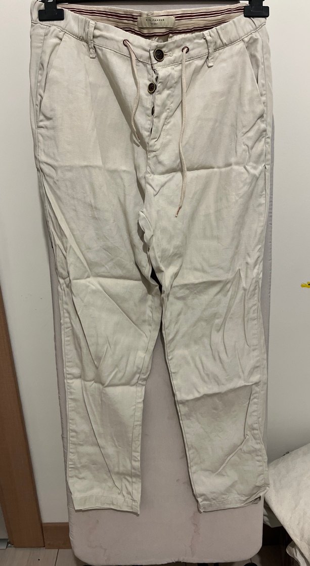 Düğmeli, rahat kesim, düz beyaz keten erkek pantolon beden 31die