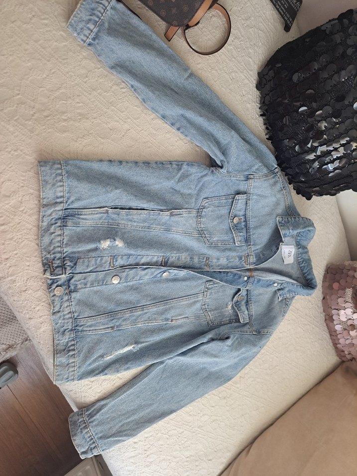 Bu kadın kot ceket, rahat kesim ve normal midi boydadır. Uzun kollu, düğmeli ve çentikli yaka detayına sahiptir. Günlük sokak stili için uygundur.