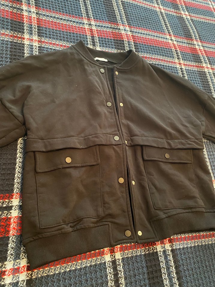 Düğmeli, Rahat Kesim siyah Kadın Ceket