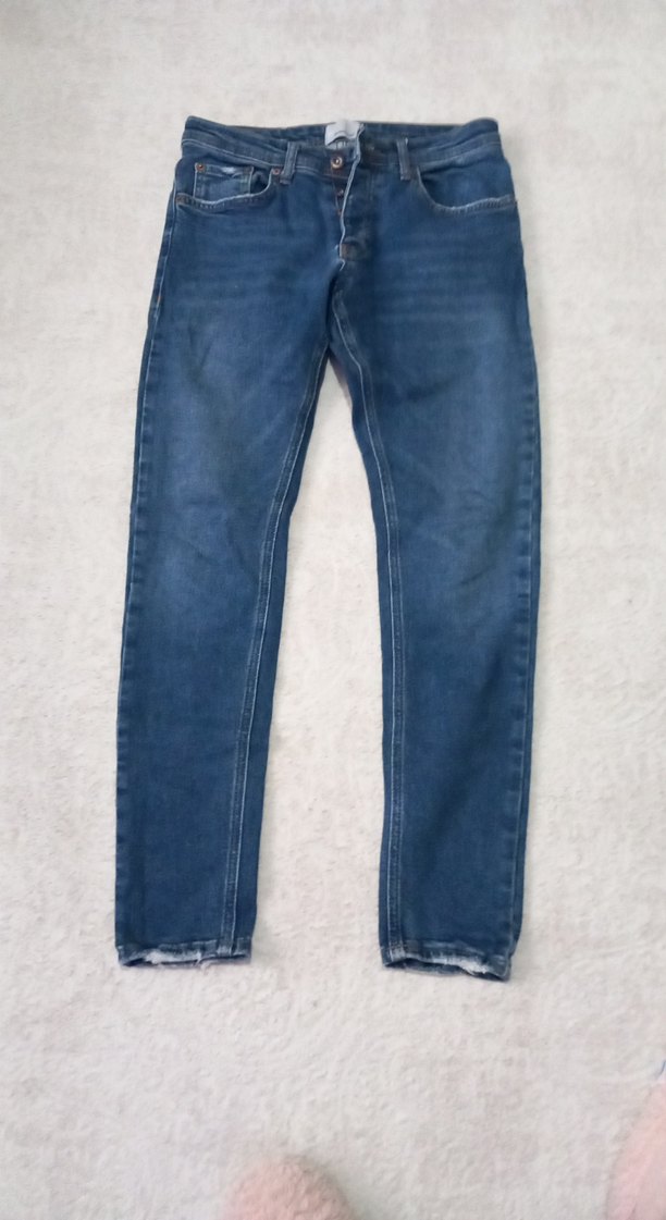 Düğmeli ve regular fit olan bu erkek kot pantolon, dayanıklı denim kumaştan yapılmıştır. Klasik mavi-gri renkte, günlük kullanıma uygundur.