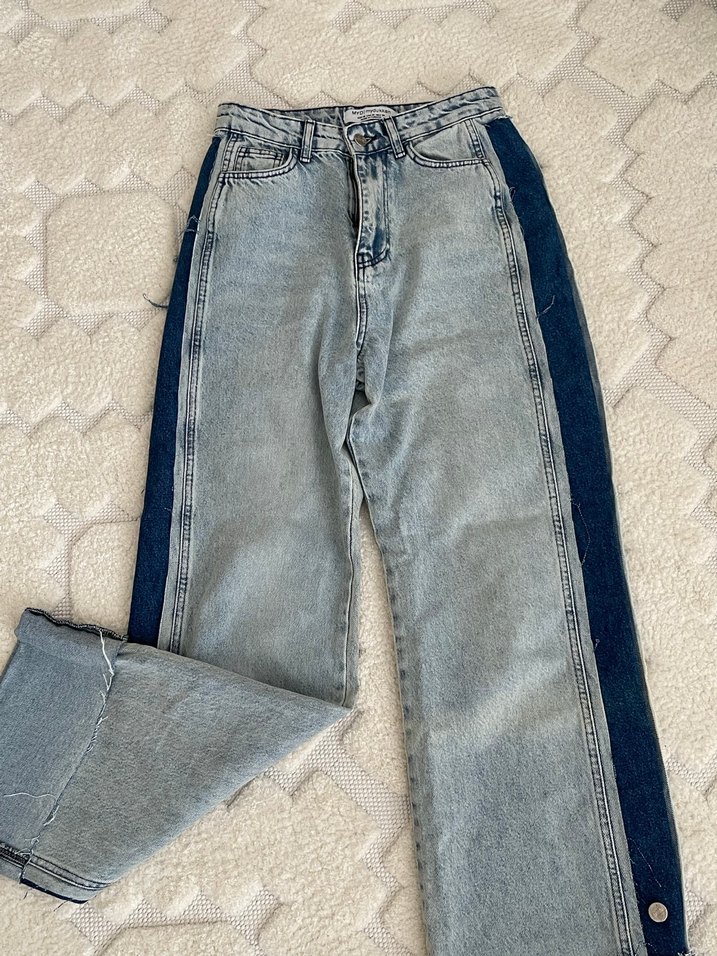 Düğmeli Regular Fit Mavi Gri Kadın Kot Pantolon