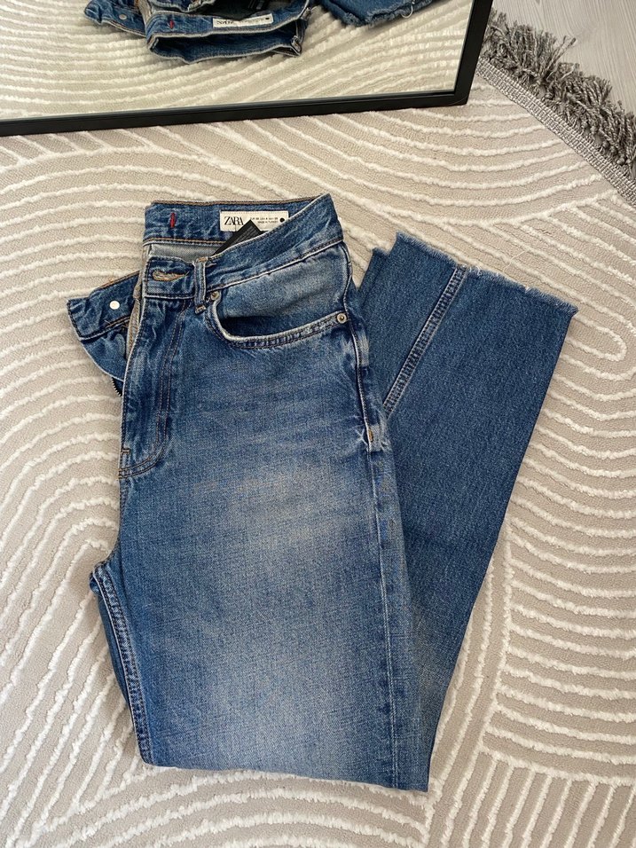 Düğmeli Regular Fit Mavi Kadın Kot Pantolon