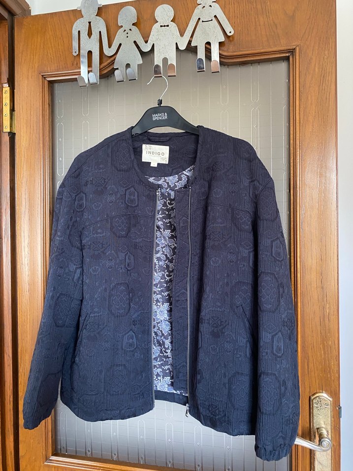 Lacivert kadın montu regular fit ve midi boyda, uzun kollu, yaka detaylı ve fermuarlı Dokulu kumaştan, gündelik ve ofis kullanımı için uygun Paris tarzı normcore stiliyle.temiz kullanılmış kusursuzdur
