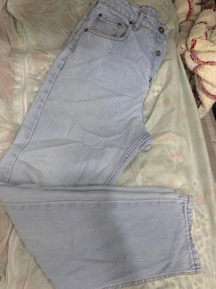 Bej renkli kot kumaştan, düğmeli ve gevşek kesim erkek kot pantolon. Günlük kullanıma uygun, desen içermeyen rahat bir model.
