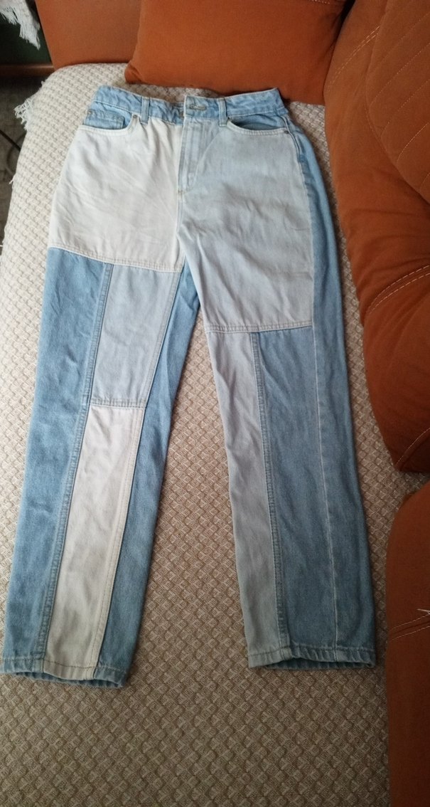 Düğmeli Renk Bloklu Mavi Kadın Jean