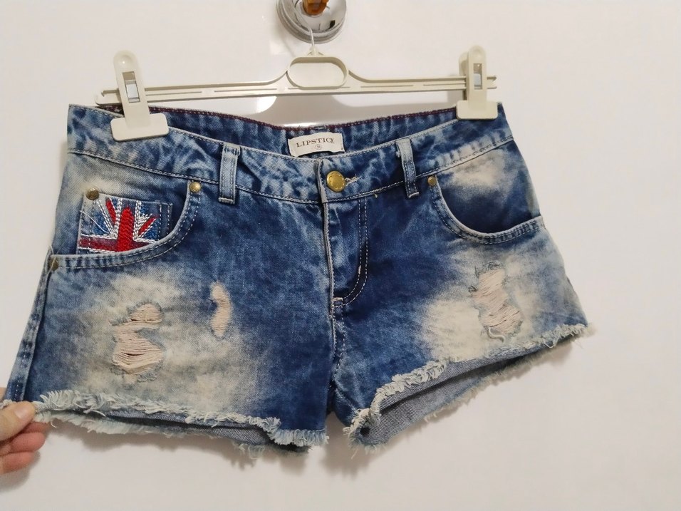 Düğmeli, bol kesim, renkli batik desenli kot şort. Kısa boyu ve yıpranmış detaylarıyla günlük sokak stiline uygun. ml uygun