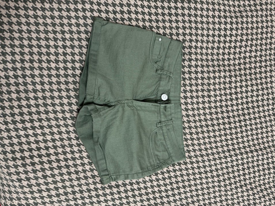 Düğmeli, salaş kesim mini şort, sentetik kumaştan, outdoor sokak tarzına uygun, haki renkli. #şort