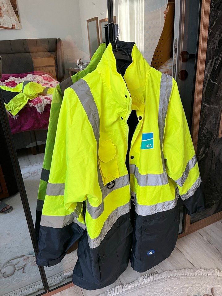 Düğmeli, yakalı ve uzun kollu bu erkek yağmurluğu yumuşak ve sıcak kumaştan yapılmıştır. Gevşek kesimi ve renkli baskılı tasarımıyla sokak stiline uygundur. İş için kullanım için idealdir