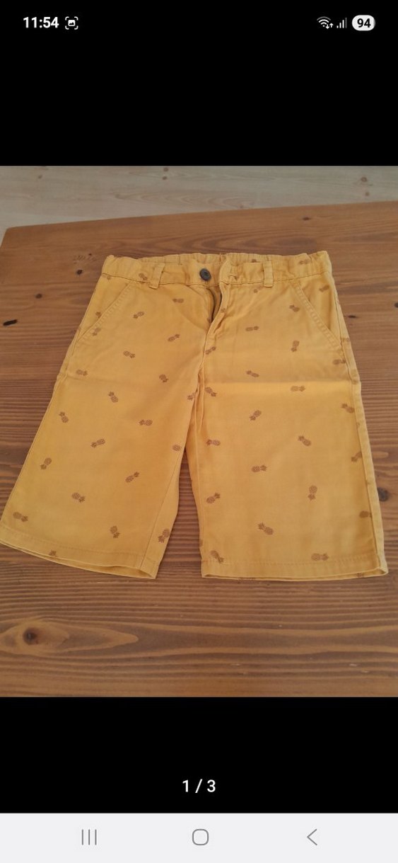 Düğmeli, bol kesim sarı pamuklu erkek şort, hafif desenli. Trendy ve rahat sokak stili için uygun.