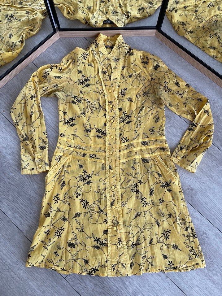 Düğmeli Sarı Uzun Keten Tunik