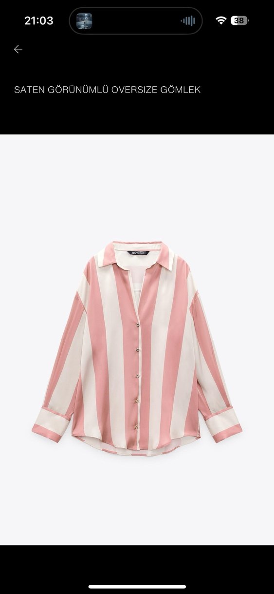 Düğmeli Saten Uzun Kollu Pembe Çizgili Gömlek