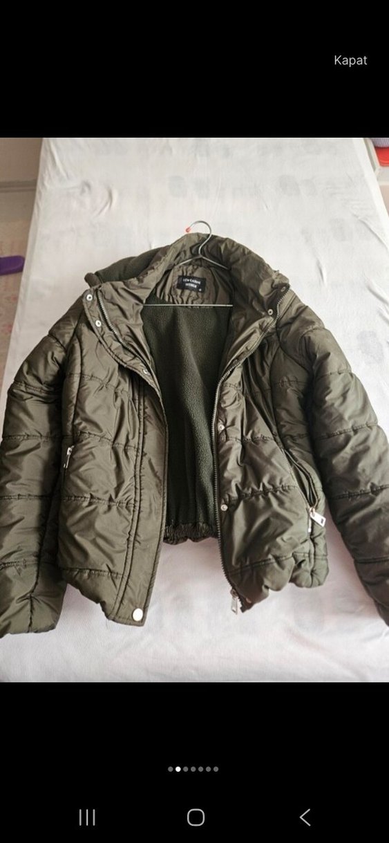Düğmeli, fitted kesim kadın kış montu. Notch yakalı ve askılı kollu, sıcak ve yumuşak kumaştan üretilmiştir. defosunu fotografladim