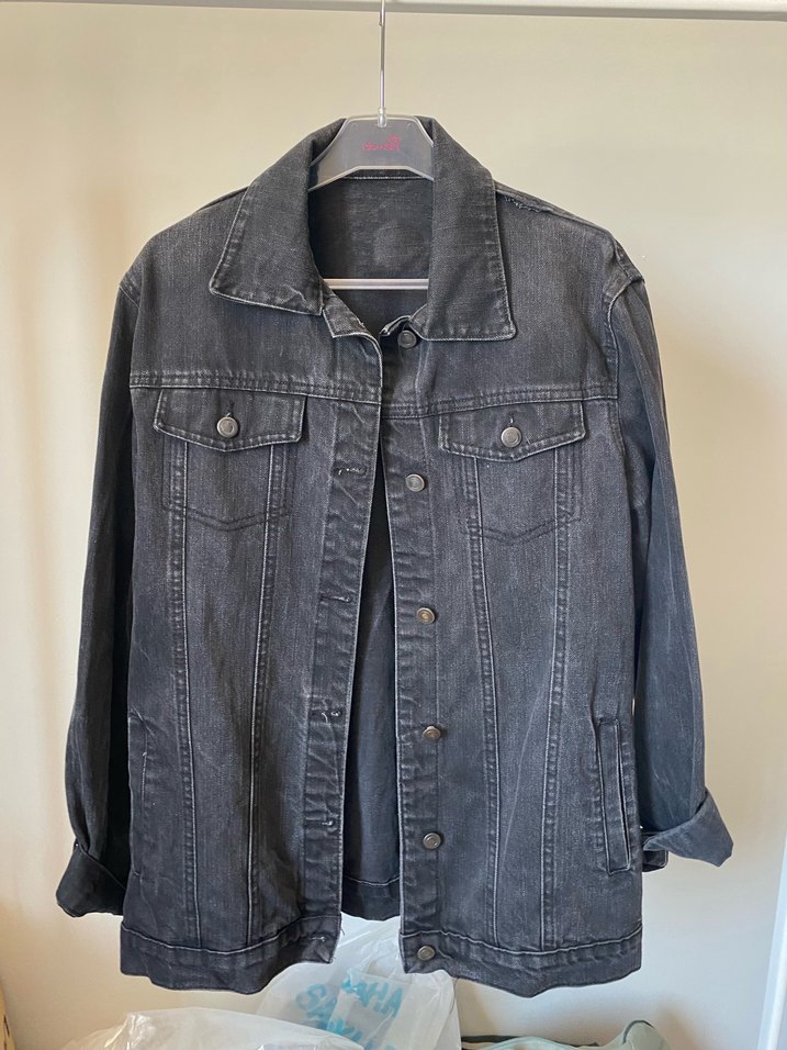 Düğmeli siyah antrasit Kadın Denim Ceket