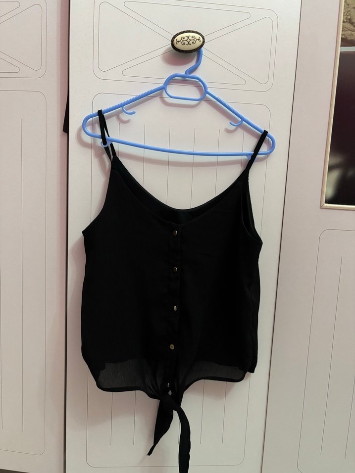 Düğmeli Siyah Askılı Midi Bluz