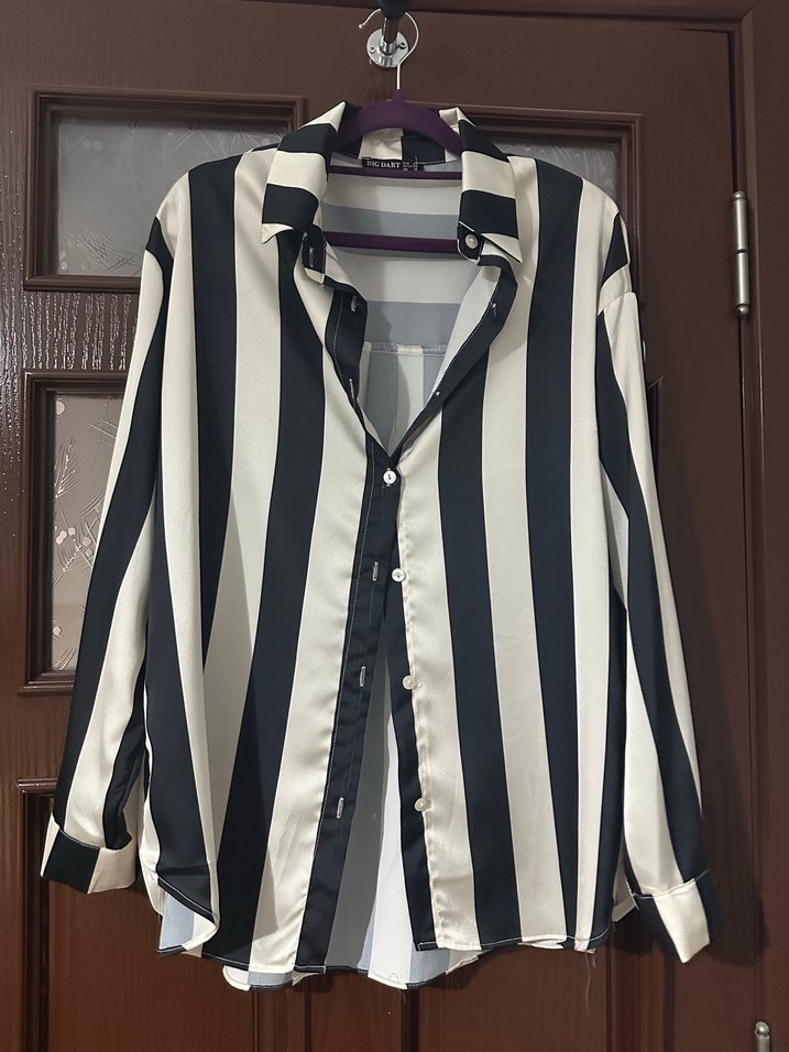 Düğmeli Siyah Beyaz Çizgili Kadın Gömlek