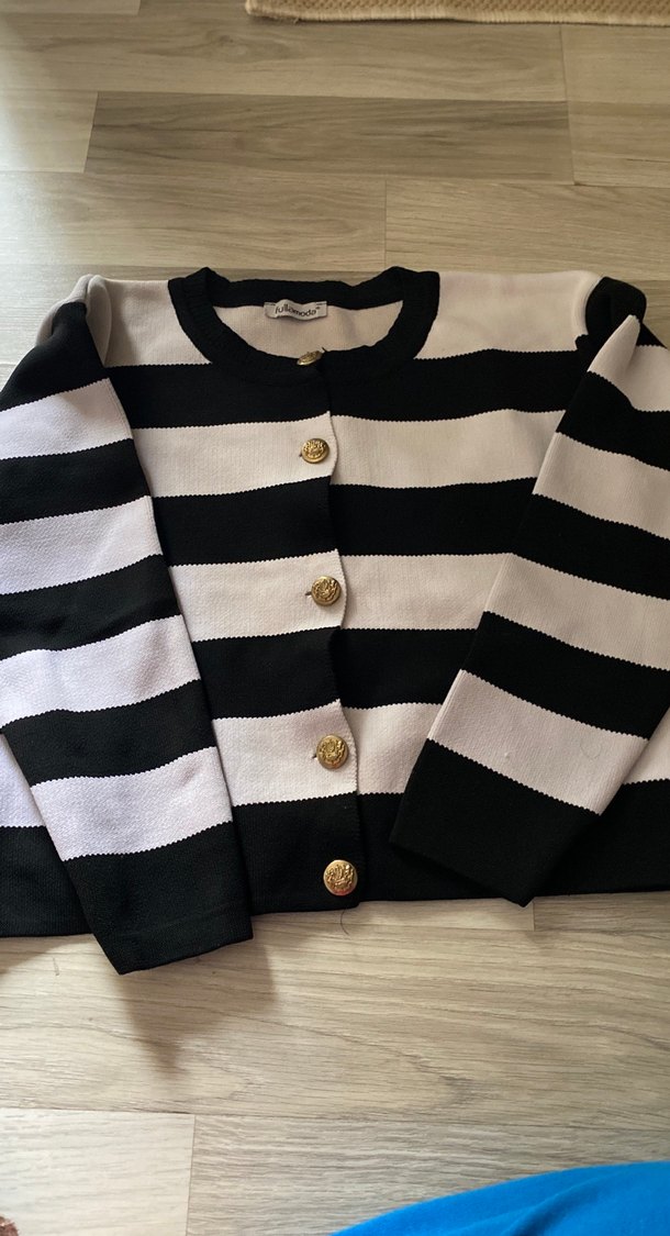 Düğmeli Siyah Beyaz Çizgili Kadın hırka