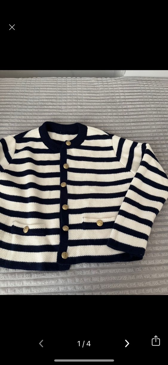 Düğmeli Siyah-Beyaz Çizgili Kadın Hırka