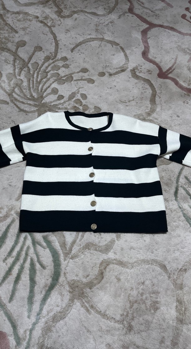 Düğmeli Siyah Beyaz Çizgili Kadın Hırka