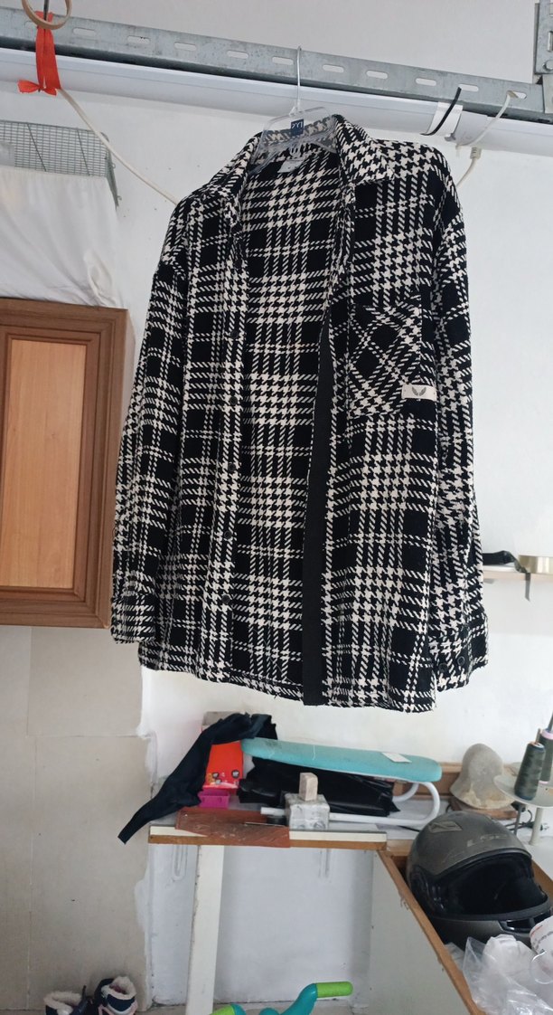 Düğmeli Siyah Beyaz Ekose Kadın Gömlek