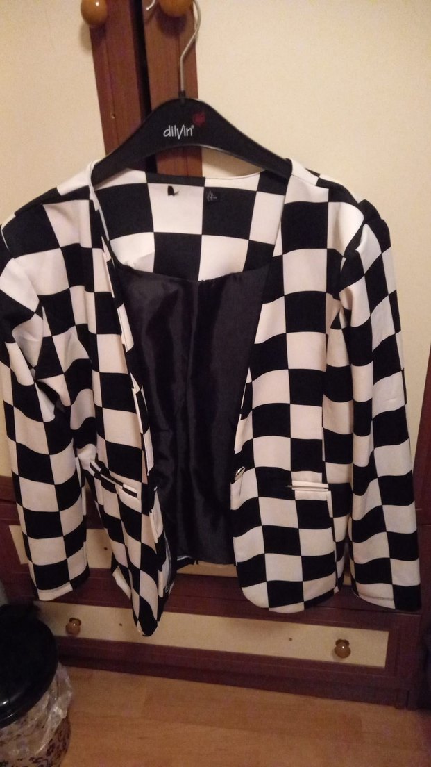 Düğmeli Siyah Beyaz Kareli Kadın Blazer