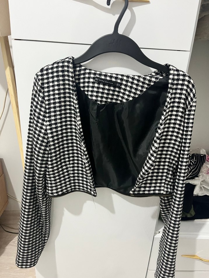 Düğmeli Siyah Beyaz Kareli Kadın Ceket