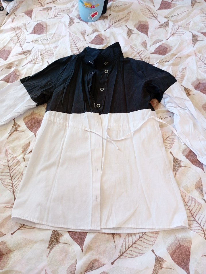 Düğmeli Siyah Beyaz Pamuklu Kadın Gömlek