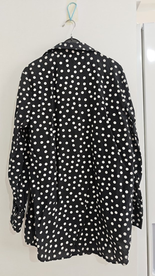 Düğmeli Siyah Beyaz Puantiyeli Uzun Kollu Kadın Gömlek