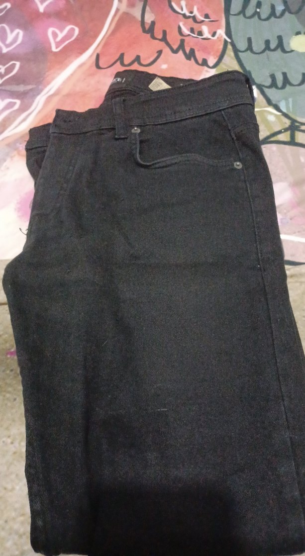 Düğmeli, bol kesim siyah denim pantolon, günlük kullanıma uygun sokak stiliyle.