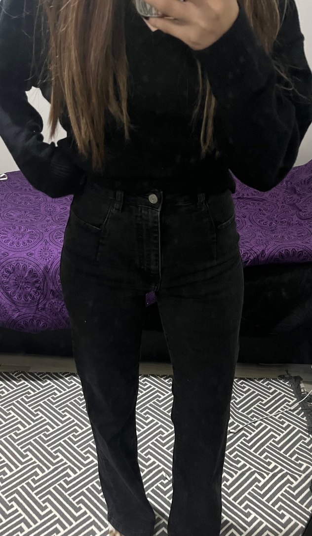 Düğmeli Siyah bol paça Kadın Kot Pantolon
