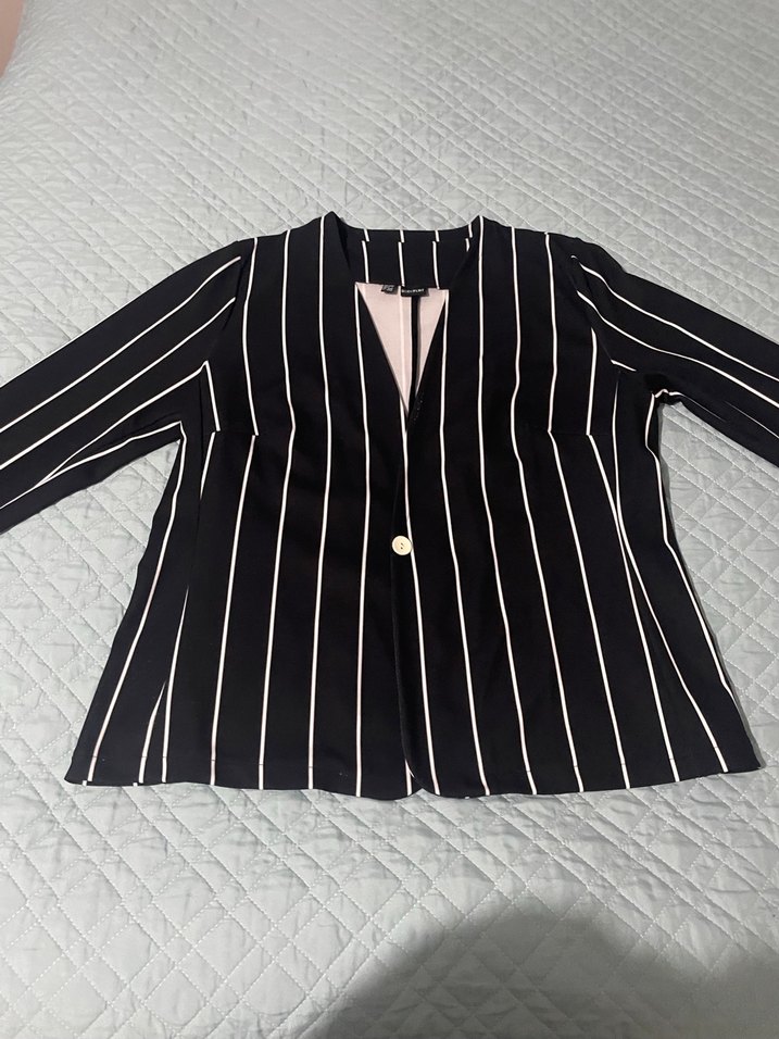 Düğmeli Siyah Çizgili Kadın Blazer
