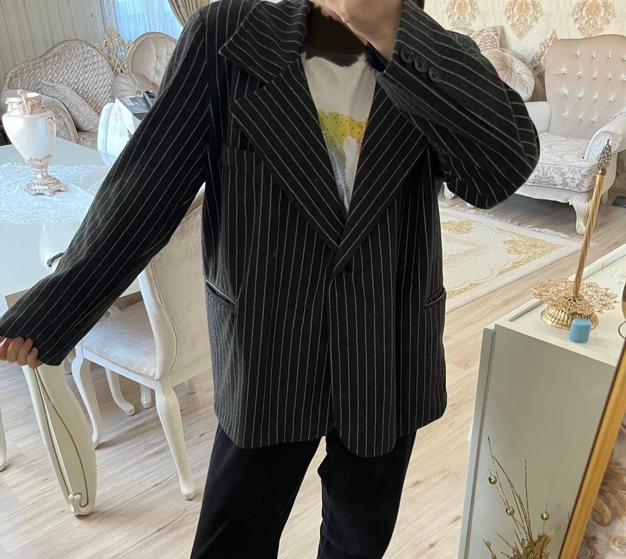 Düğmeli Siyah Çizgili Kadın Blazer Ceket