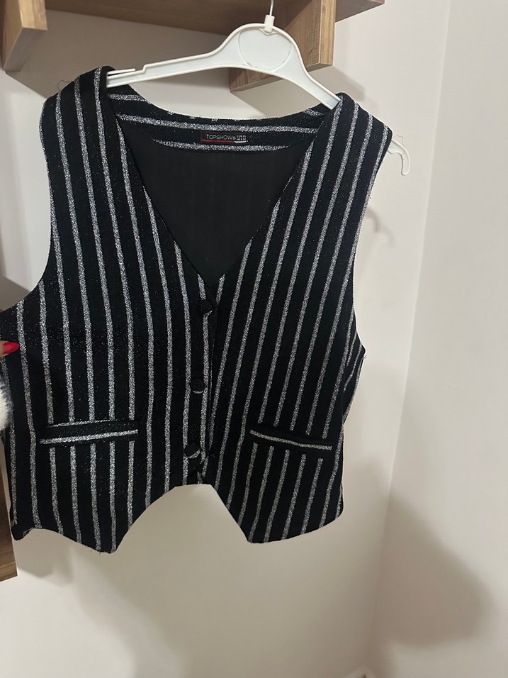 Düğmeli Siyah Çizgili Mini Yelek