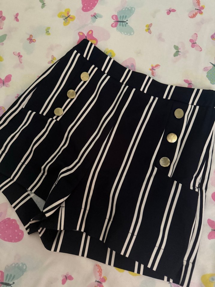 Düğmeli Siyah Çizgili Yüksek Bel Şort