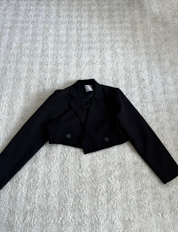 Düğmeli Siyah Crop Kadın Blazer Ceket