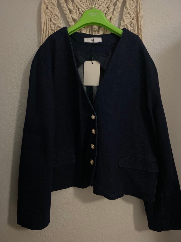 Düğmeli siyah denim ceket, uzun kollu ve normal midi boyda. Notlu yaka ve bol kesimle günlük kullanıma uygundur. Parisian tarzında sade tasarım.
