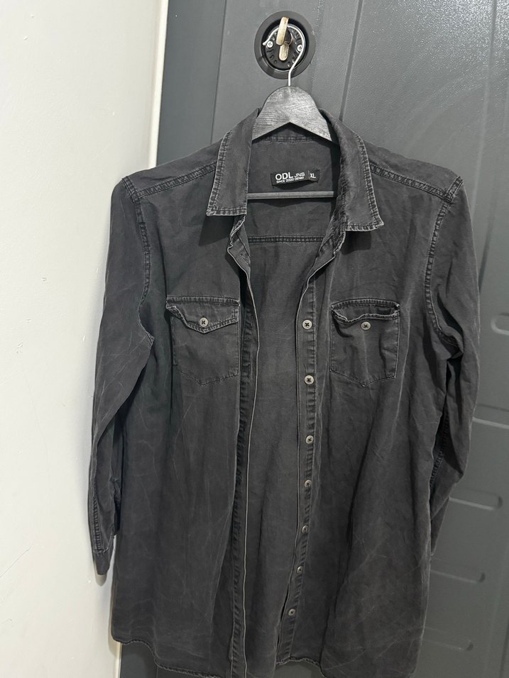 Düğmeli ön cep detaylı, uzun kollu, siyah denim ceket. Salaş kesimi ve normal boyu ile günlük sokak stiline uygun.