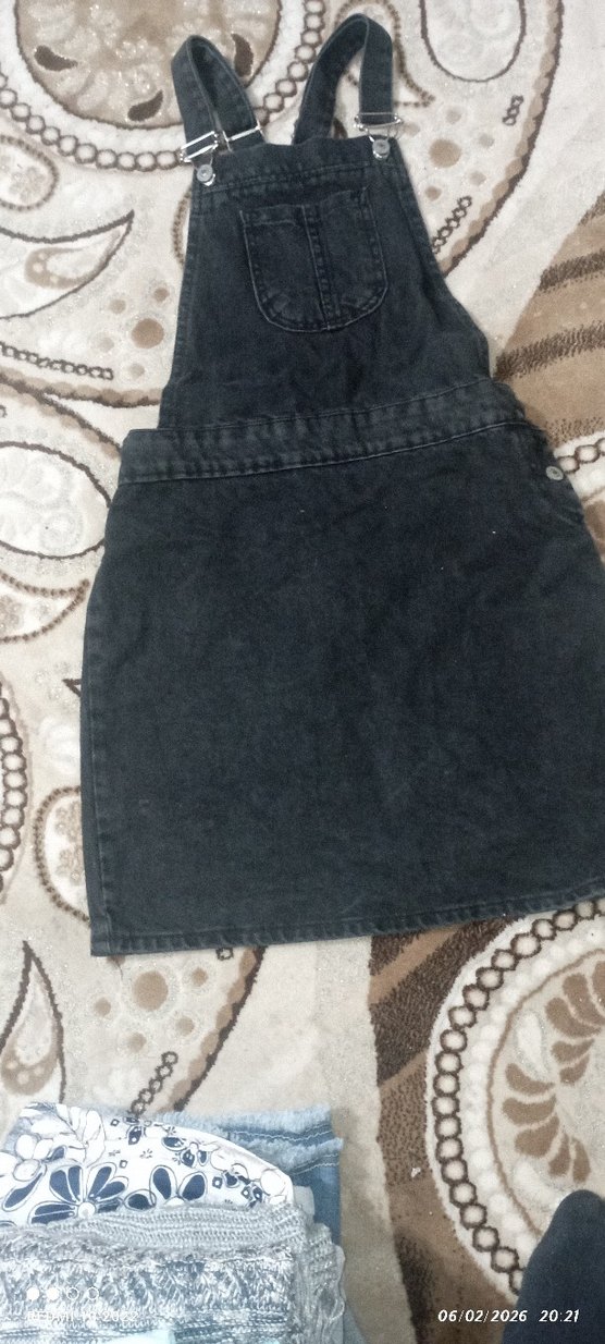 Düğmeli detaylı, siyah denim kadın kısa salopet. Salaş kesimi ile günlük sokak stiline uygun.