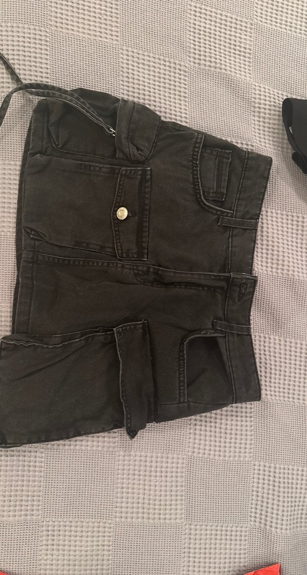 Düğmeli Siyah Denim Mini Etek